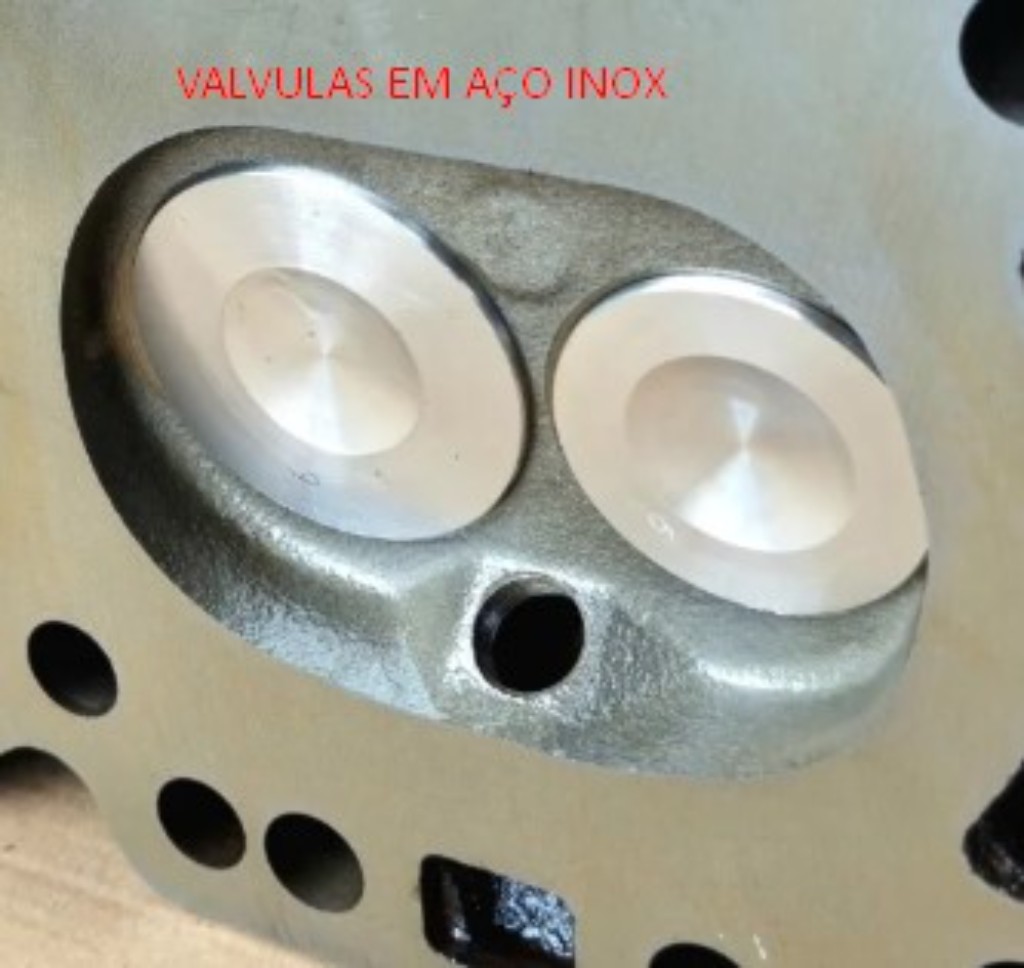 Válvulas de Inox: Substituição pelas válvulas de aço inox forjado, que oferecem maior resistência térmica e melhor aerodinâmica. Admissão 1,94" e escape 1,60"